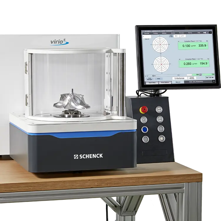 Whether in workshops and repair shops or in series production: Virio 10, Virio 50, Virio 100, and Virio 300 are high-precision balancing machines for a wide range of rotors up to 300 kg. All models can be set up directly on the workshop floor without a foundation, quickly put into operation, and just as quickly relocated.